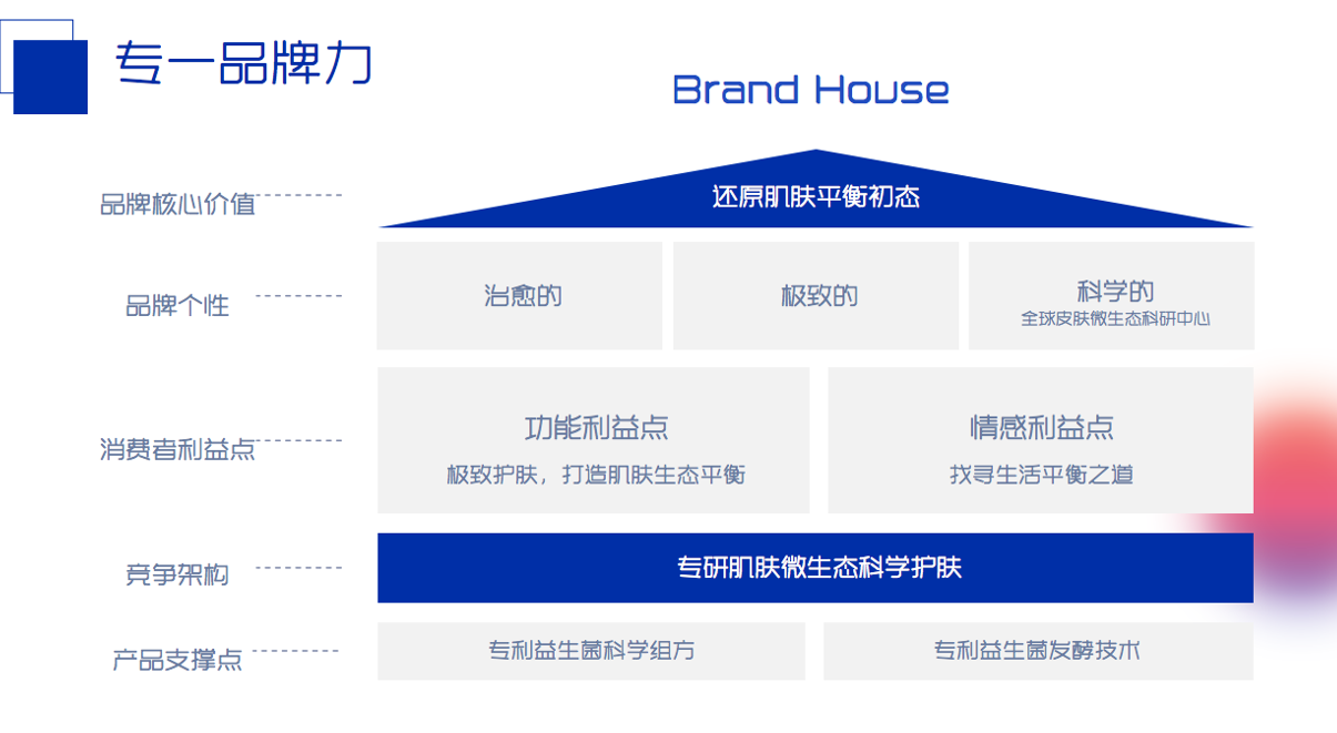 李婷提出璦爾博士產(chǎn)品開(kāi)發(fā)思路歸結(jié)為八個(gè)字:品牌在左、研發(fā)在右。如何讓品牌的所有要素都有一條主線(xiàn)貫穿,所有的事都是一件事,那就是構(gòu)建品牌的“上層建筑”,所有產(chǎn)品開(kāi)發(fā)都圍繞著品牌屋進(jìn)行。璦爾博士以專(zhuān)研微生態(tài)科學(xué)護(hù)膚為定位,以專(zhuān)利益生菌科學(xué)組方和專(zhuān)利益生菌發(fā)酵技術(shù)為產(chǎn)品支撐,以品牌屋作為產(chǎn)品開(kāi)發(fā)的骨架,讓品牌能夠始終以統(tǒng)一的聲音講述一件事。