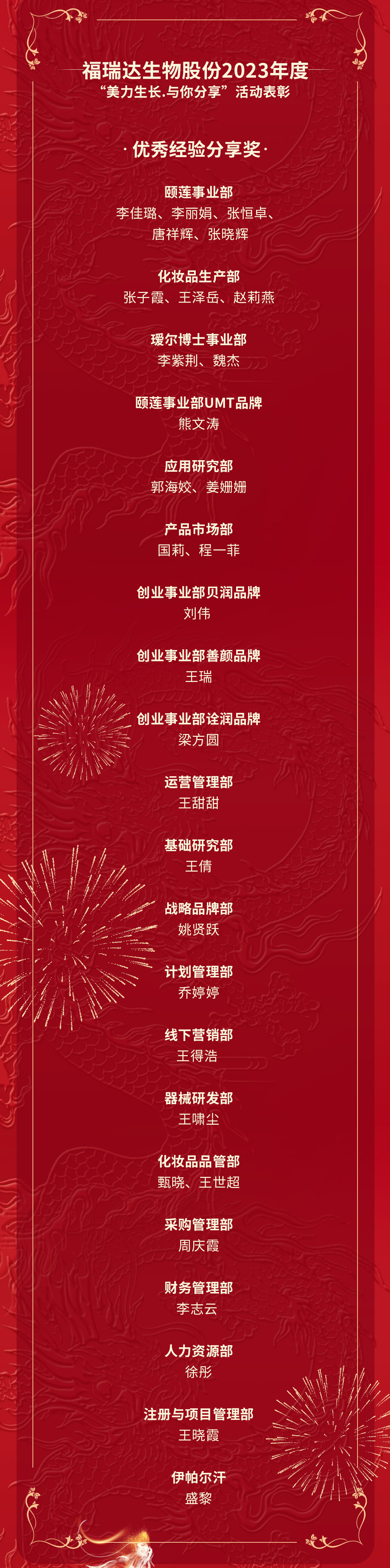這一年,人力資源部根據(jù)公司長(zhǎng)期戰(zhàn)略規(guī)劃和2023年管理綱要,為傳播公司內(nèi)部?jī)?yōu)秀員工和優(yōu)秀案例經(jīng)驗(yàn),提升員工工作技能,營(yíng)造全員學(xué)習(xí)氛圍,沉淀組織能力資產(chǎn),特在公司內(nèi)部開(kāi)展“美力生長(zhǎng) 與你分享”全員分享活動(dòng),并將優(yōu)秀作品結(jié)集發(fā)布。本合集收納了公司2023年度共31期“美力生長(zhǎng) 與你分享”優(yōu)秀作品,包括銷售、研發(fā)、生產(chǎn)和職能4大板塊,21個(gè)部門(mén)的31篇案例。會(huì)上,對(duì)31位優(yōu)秀分享者進(jìn)行了表彰。