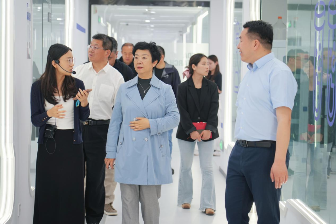 調(diào)研組一行首先參觀了福瑞達(dá)世界美妝科技館、化妝品透明工廠、研發(fā)中心實(shí)驗(yàn)室及集團(tuán)總部展廳。作為國內(nèi)化妝品行業(yè)的頭部企業(yè),福瑞達(dá)生物股份依托“妝藥同源”的科研優(yōu)勢、品牌優(yōu)勢及產(chǎn)業(yè)協(xié)同優(yōu)勢,在玻尿酸、重組膠原蛋白等化妝品原料、功效性護(hù)膚品開發(fā)等領(lǐng)域取得顯著成果。蘇磊紅局長詳細(xì)詢問了企業(yè)在原料提取工藝、功效驗(yàn)證、質(zhì)量管控等方面的技術(shù)突破,并對透明工廠全過程智能化、數(shù)字化、綠色化管理表示高度認(rèn)可。