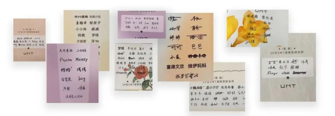 內(nèi)測的優(yōu)異效果,激發(fā)了品牌打造“UMT由苜造物官”的計(jì)劃。僅在2024年一年時(shí)間里,造物官就與由苜共創(chuàng)了11款產(chǎn)品。打開由苜每款產(chǎn)品包裝,映入眼前的就是配方參與者造物官的簽名,宛若一條隱形的線穿透冰冷的商品界限,牽引著用戶的心。