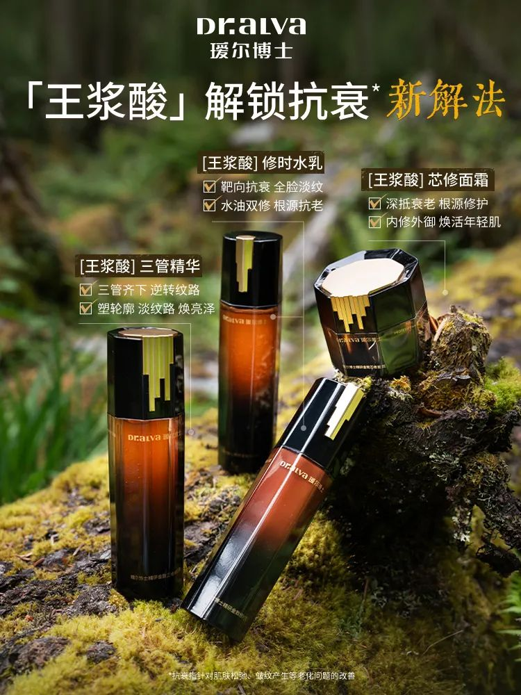 基于此,福瑞達生物股份開發(fā)了璦爾博士“精研金致”系列,涵蓋三重質地三重劑型的三管精華、懸浮油脂微囊的修時水、仿生液晶促滲修時乳及芯修面霜等品類,深度契合熟敏肌生理特性,直擊斷崖式衰老。功效報告顯示王漿酸產品修護、抗老效果顯著,預示著其在功效型護膚產品的開發(fā)領域具有很好的應用前景。