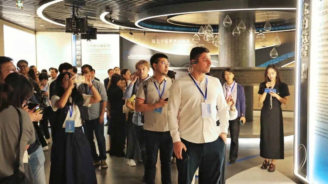 采訪團首先來到福瑞達世界美妝科技館參觀。這是國內(nèi)首個美妝主題科技館,于2024年8月啟用。展廳以世界美妝發(fā)展史介紹為起點,共有五個展陳單元,通過詳實的文獻記載、復刻文物、AI變妝、互動體驗、科技展示、元宇宙暢想等,全面展示世界美妝文化及科技發(fā)展的獨特魅力。