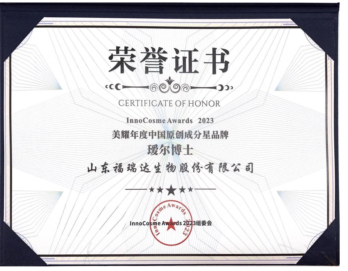 第一個成分獎項(xiàng)——第三屆「InnoCosme美耀年度中國原創(chuàng)成分星品牌」獎項(xiàng)